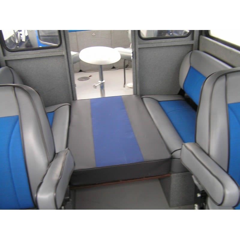 The benches in the salon are transformed into beds