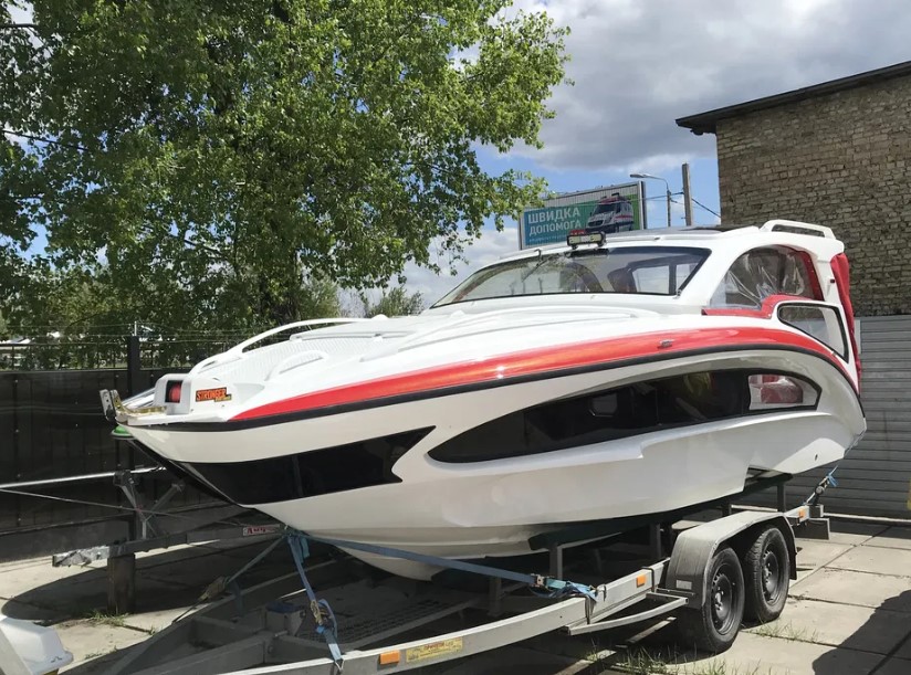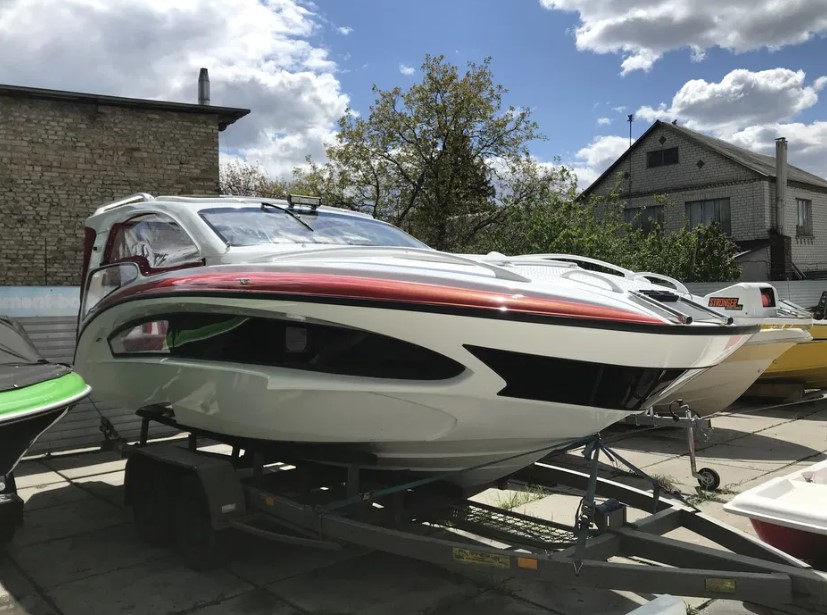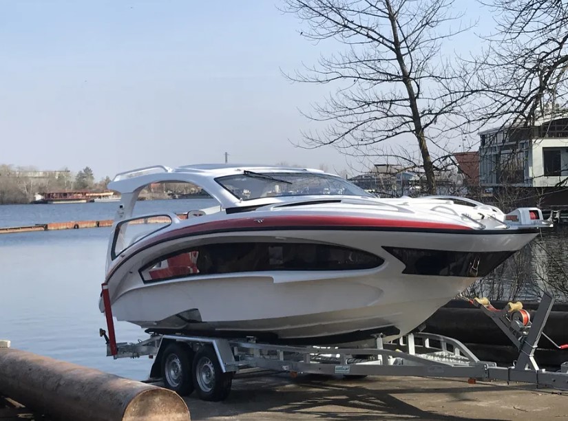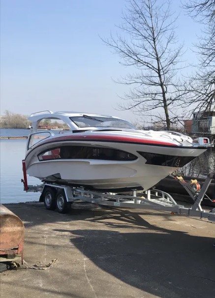 Corsair 700 Hard Top boat for sale. Year of manufacture 2020. Condition of the new boat. There is no engine. The carriage is two-axle. Equipment: steering, music, shower, toilet, cabin, washbasin, table, lights, running awning, mosquito nets, anchor winch, sunroof windshield cleaner and more