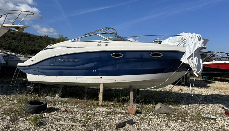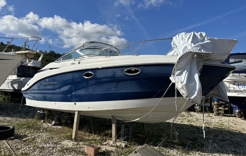 We offer for sale a Crownline 264 CR. Year of production: 2015. Engine: Mercruiser 377 Mag 320 HP, Bravo 3 drive. Excellent condition. No trailer included. Equipment: adjustable trim tabs with position indicator, navigation, marine audio system, adjustable steering column, engine compartment hatch on an electric lift, bimini top and cockpit covers, sun deck, cockpit table, heating platform, EVA deck covering, two showers, hot water boiler, induction stove, microwave, refrigerator, two cabins, shore power 220V. Location: Montenegro. Delivery to your country is possible. Contact via WhatsApp. Mileage: 3,000 km. Fuel type: gasoline.