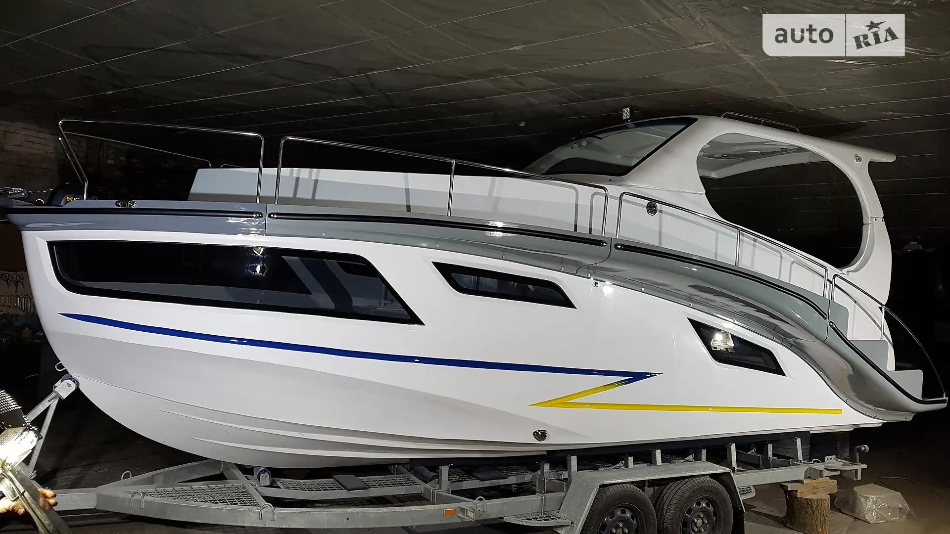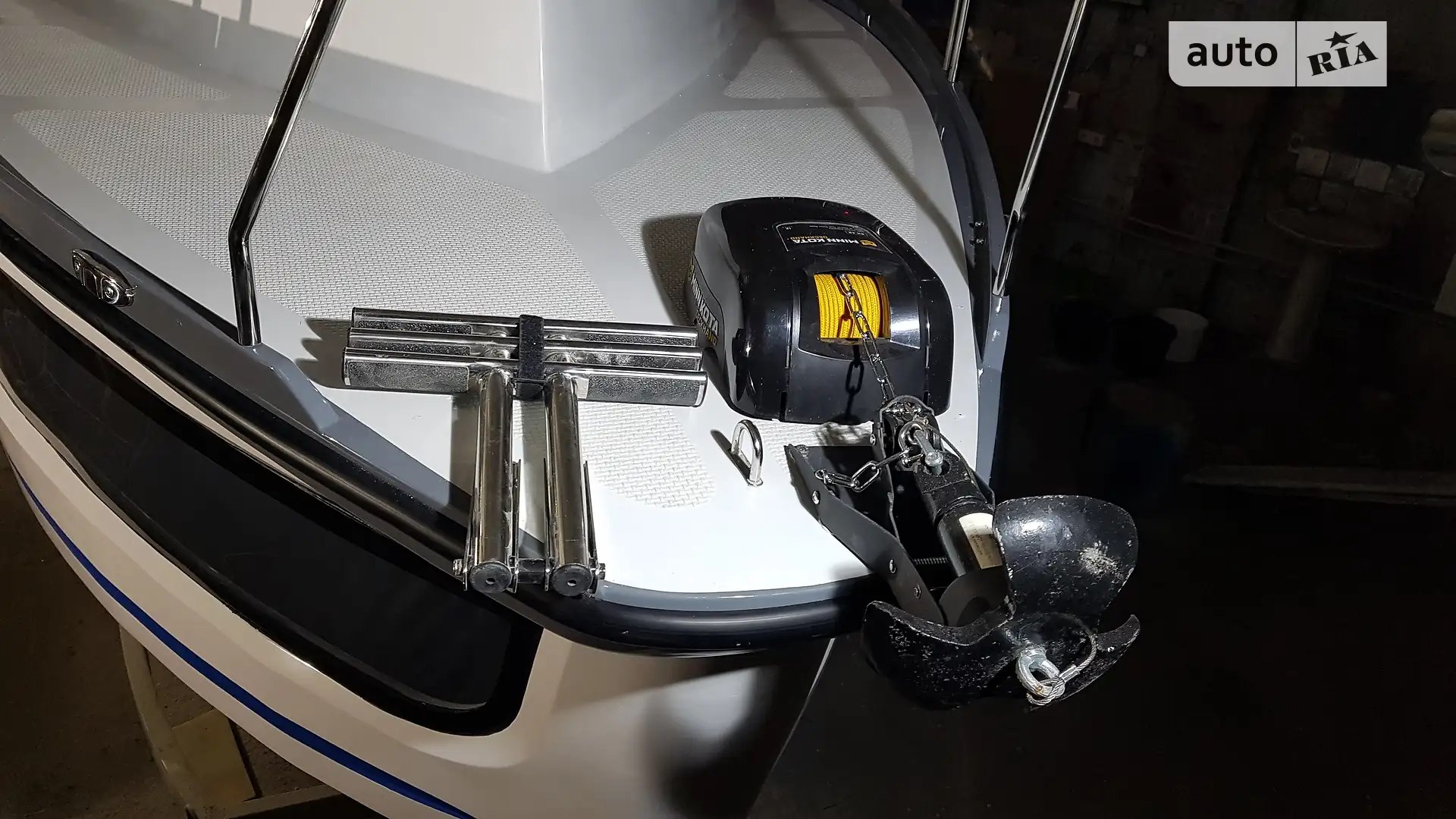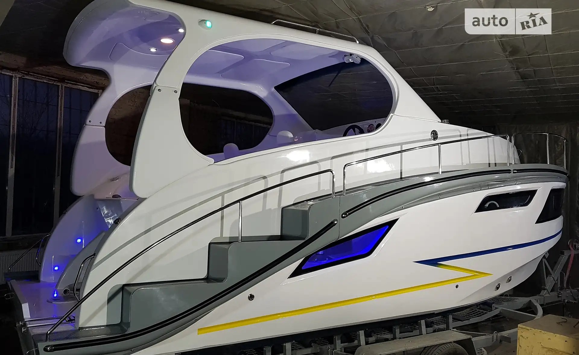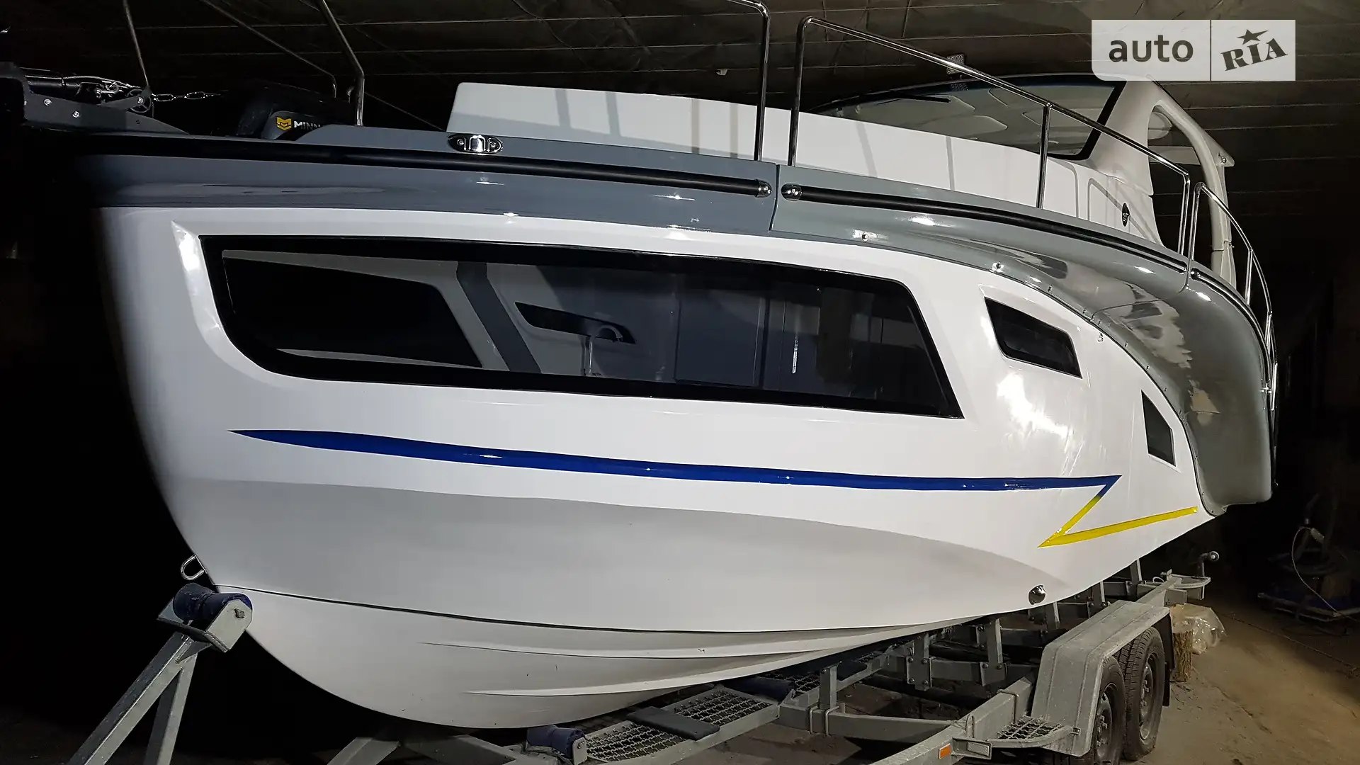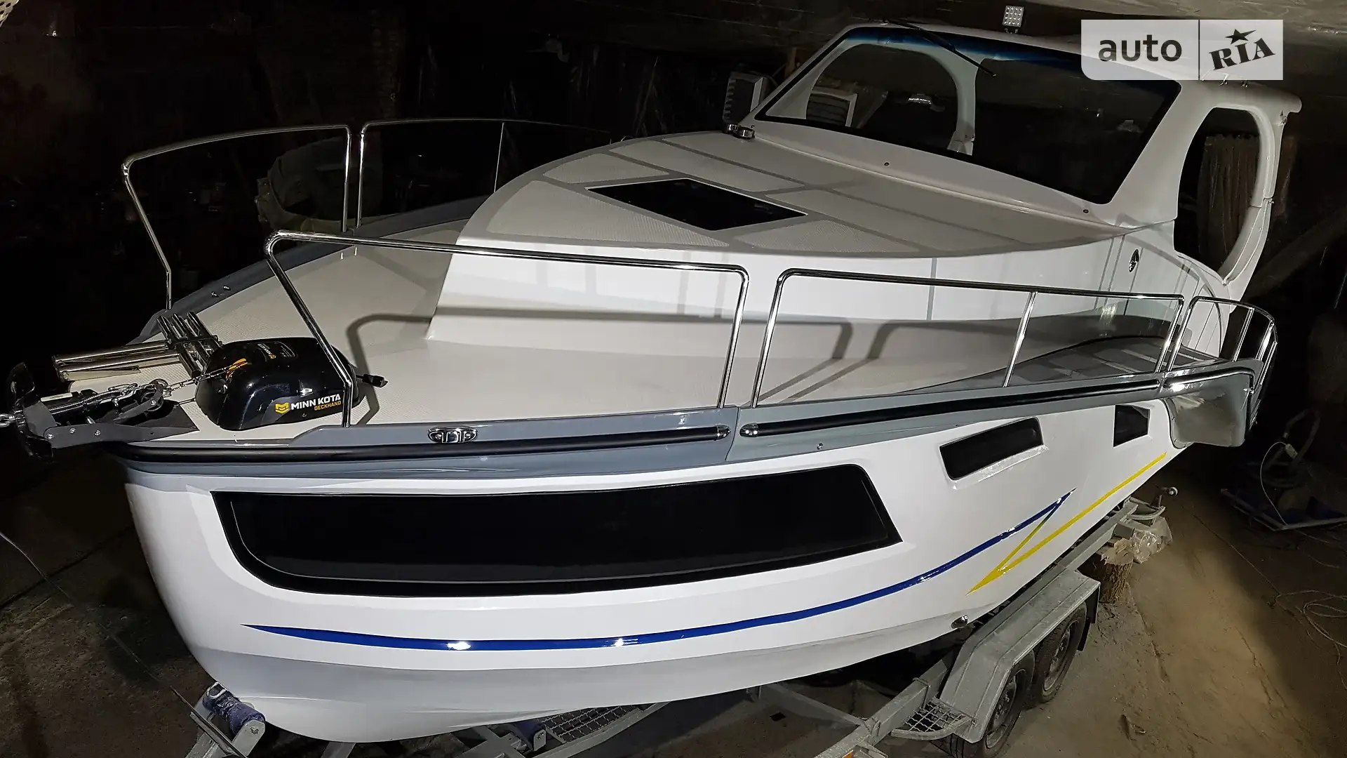 Cabin Cruiser RB-720X, a new project by TT-AVIA. The model’s uniqueness lies in the detachable tracks with railings for transport. In addition to basic elements, the equipment includes a refrigerator with a freezer (-20°C), a TV, a marine audio system, a microwave with an inverter, a hatch in the cabin with tinted glass, a separate cabin with an electric toilet with a grinder, a shower, an extractor fan, decorative cockpit and side illuminators, a power steering pump with stern output, a fuel filter-separator, a Minn Kota 40 anchor winch with remote control, a shower on the stern ladder, and additional handrails on the hardtop. The price is indicated without an engine. Orders are accepted for the 2023-2024 season. For additional information, please call.