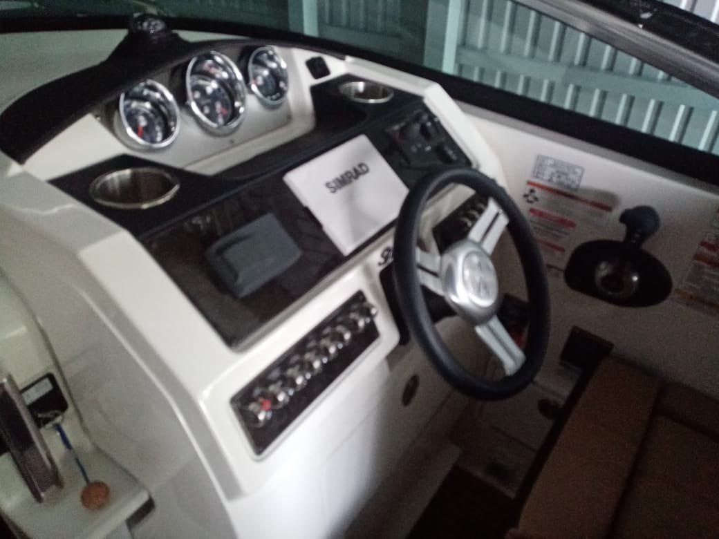 For more than 7 years, the Sea Ray Sundancer 265 has been impressing everyone, demonstrating how comfortable a boat can be, reaching a length of 8 meters. The company recently updated this model and now the cruiser has become much better. Sea Ray Sundancer 265 is safely referred to those boats on which it is comfortable and you can always enjoy a boat trip. The shape and design of the boat is ingeniously thought out, which significantly increases its comfort. And although the Sea Ray Sundancer 265 is a small boat that can be transported behind an SUV on a trailer, the manufacturers have implemented everything that is required for a safe walk on the water or a comfortable overnight stay under the starry sky in a friendly company.