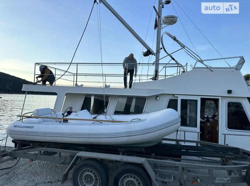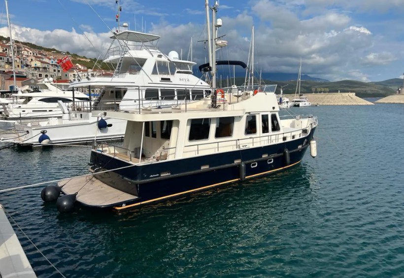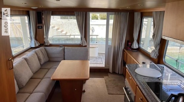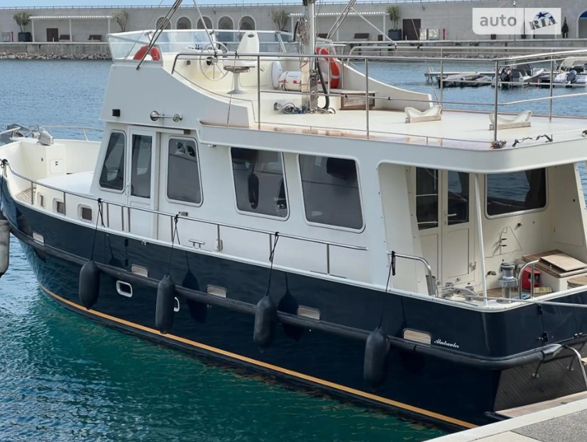 Dutch trawler DE ALM. Year of release 2008. Mileage 780 m.ch. Located in Montenegro. Maximum equipment. Three cabins, two bathrooms, large company cabins, air conditioning, webasto, large refrigerator, washing machine and dishwasher, two steering wheels, autopilot, navigation, infirmary, two diesel engines, two fuel tanks of 1, 2 tons, deck covering with teak, electric beam crane, tender. Length 15 m, width 4.5 m, draft 1.4 m, displacement 36 tons, construction material steel, engine Perkins 307 Kw, built at the Dutch shipyard. Registration Dominica.