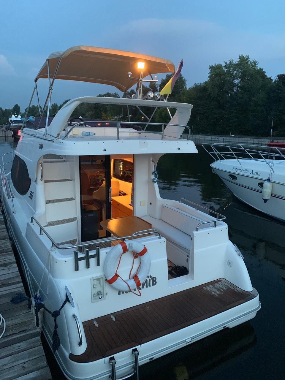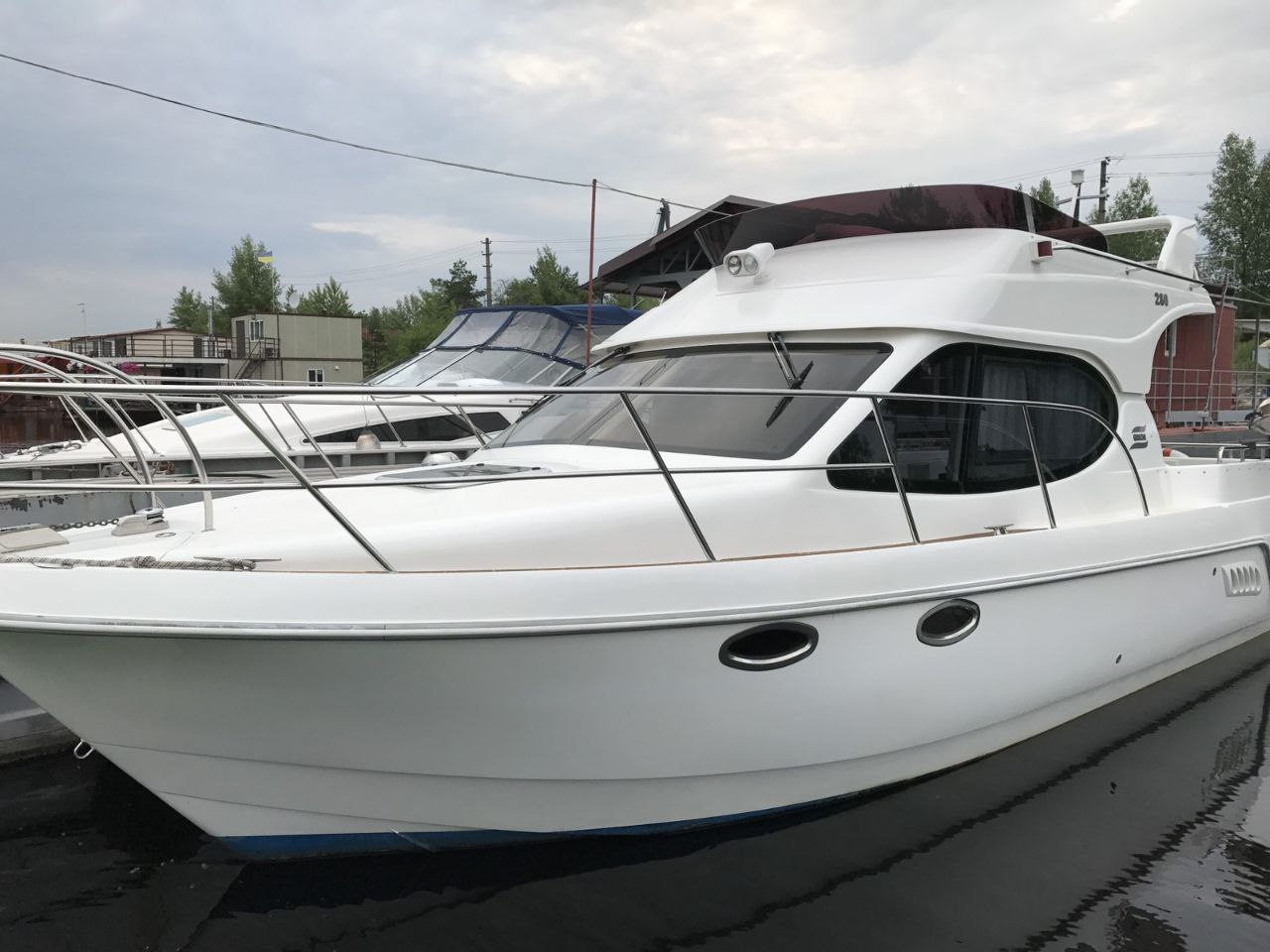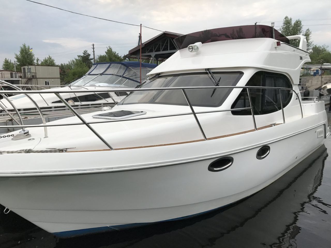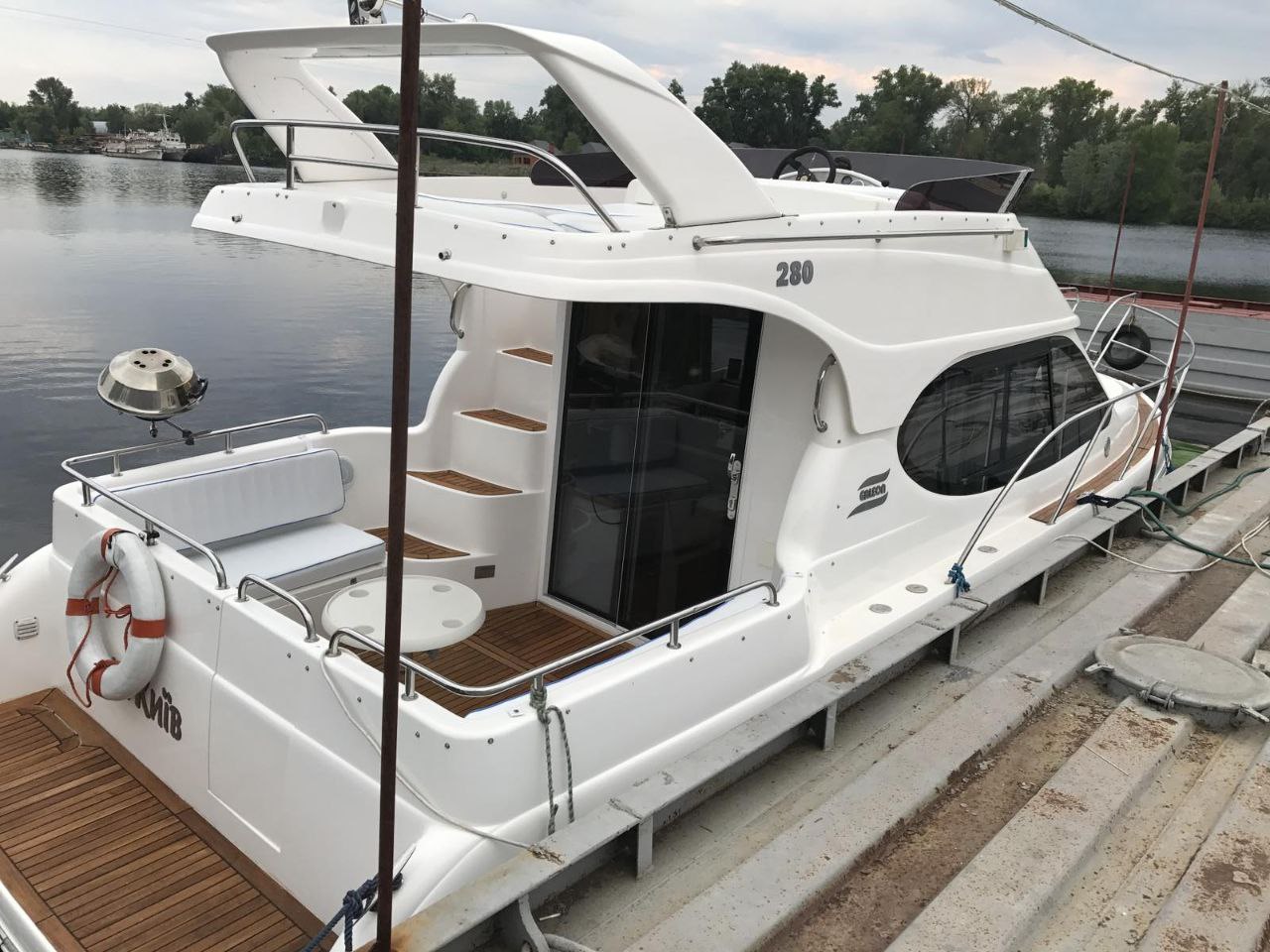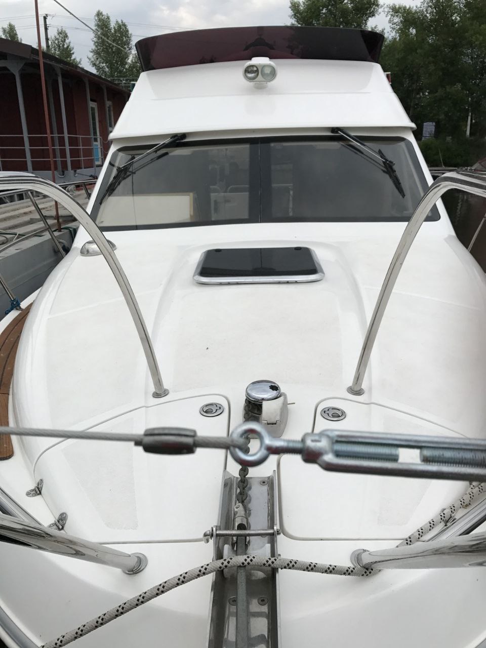 Equipment: two control posts, two cabins, company cabin, galley, galley, TV, diesel stove for cooking, tanning mattress on the bow of the vessel, cockpit awning, awning from the sun on the flybridge, teak covering of the deck and mining platforms, hot water boiler , aft shower, a table in the cockpit. One engine, Volvopenta D 4, diesel, twin-screw column, fuel tank 400 l., waste water tank 80 l., water tank 120 l. The vessel is fully serviced.