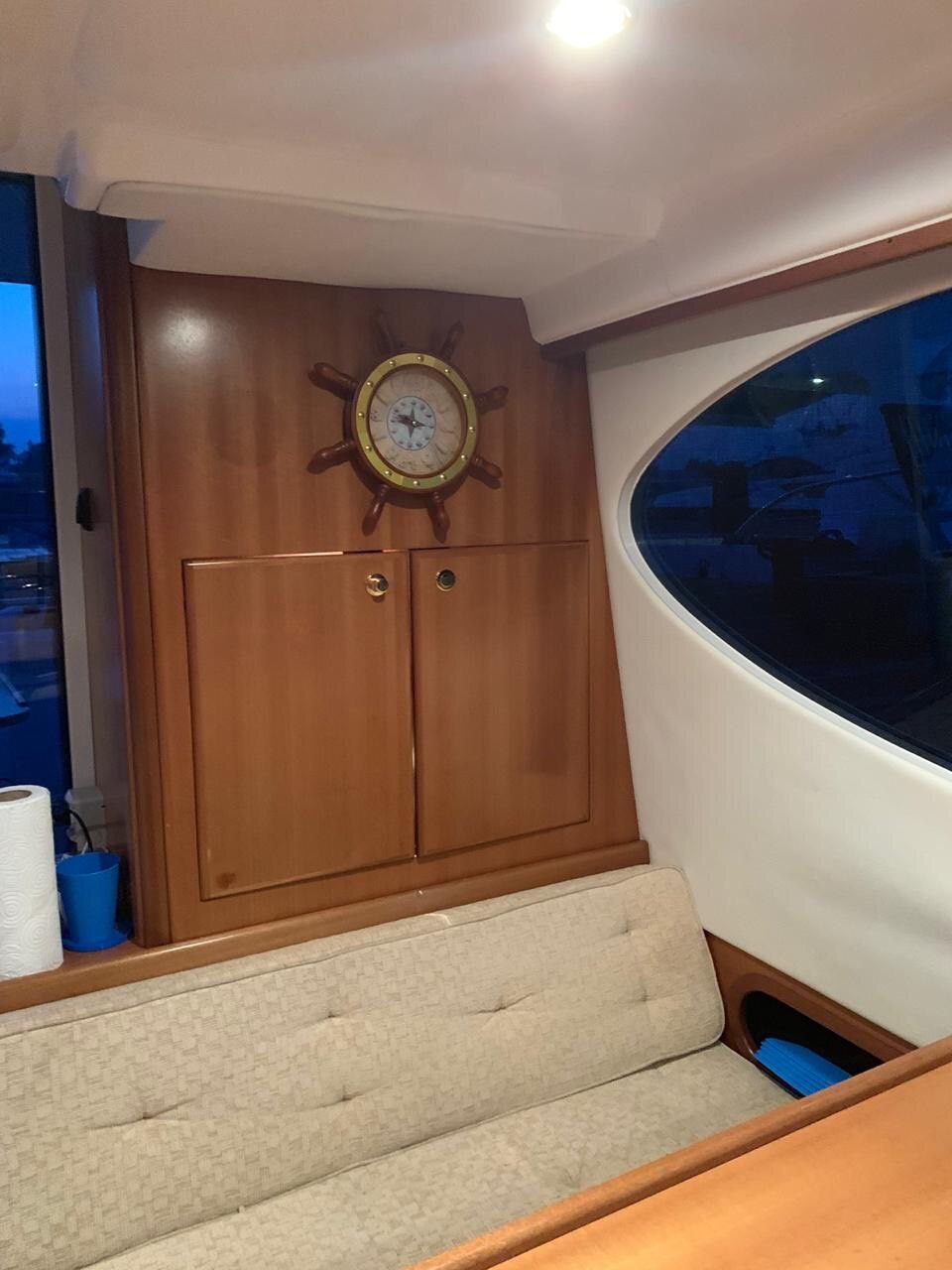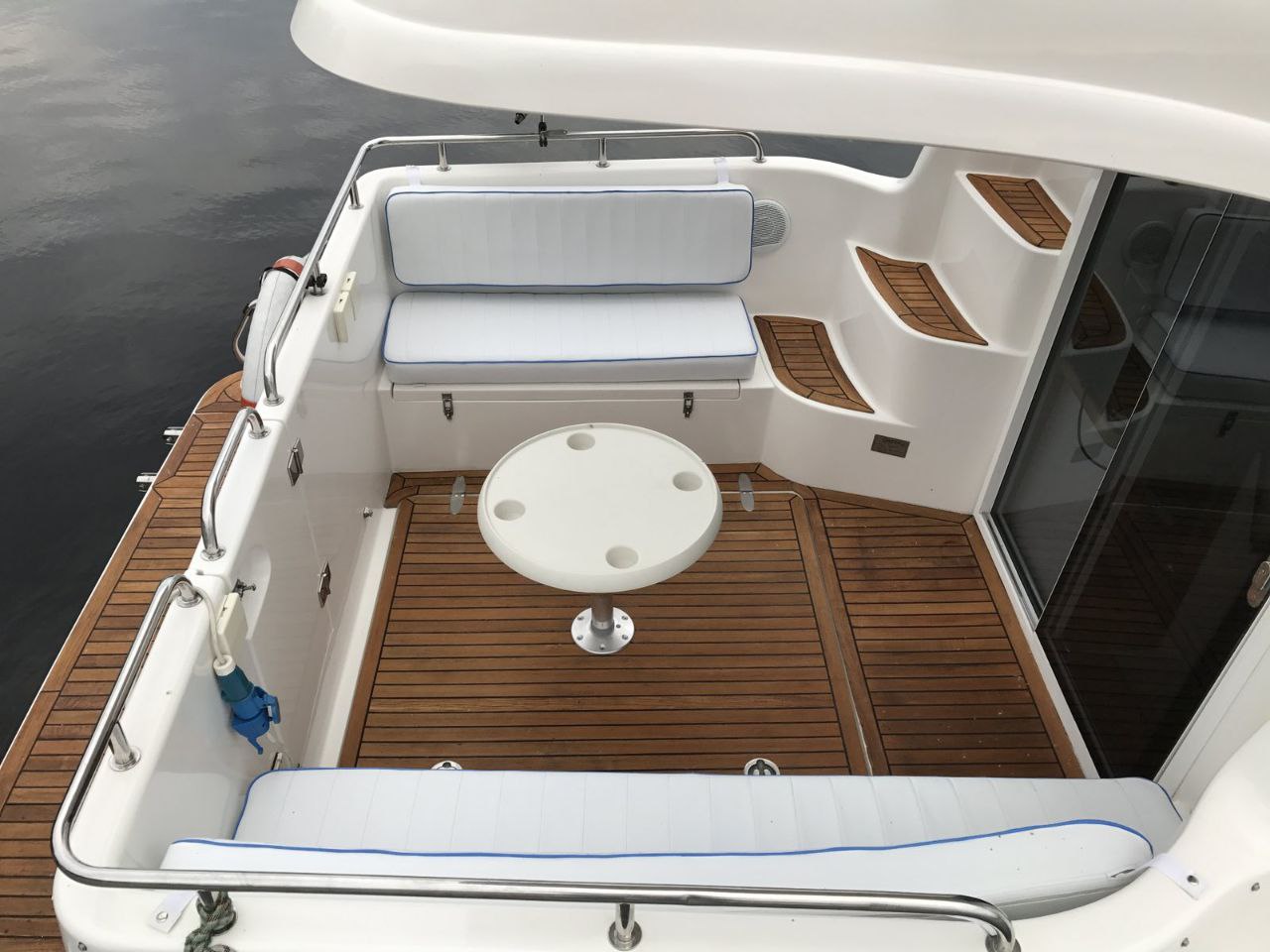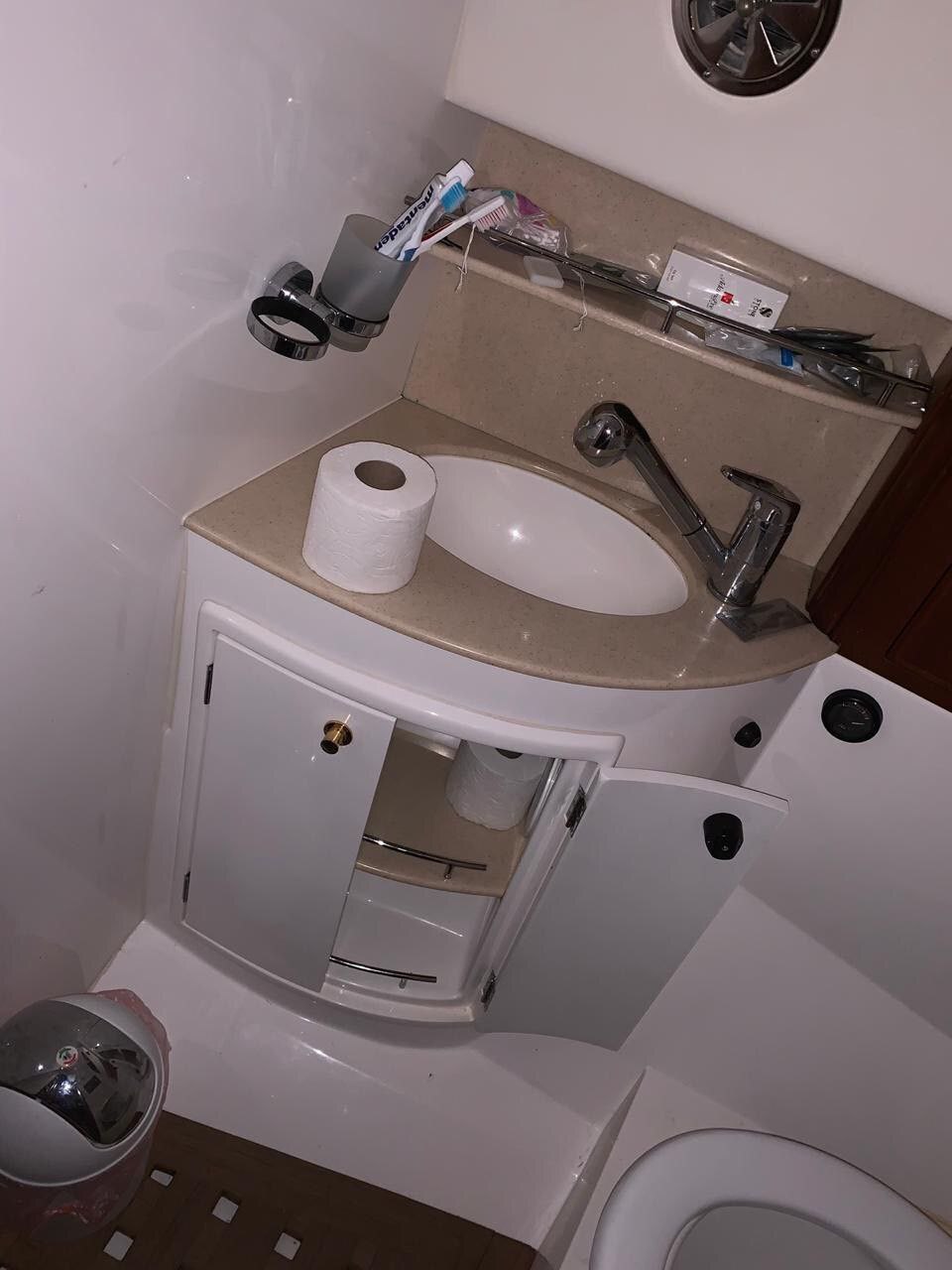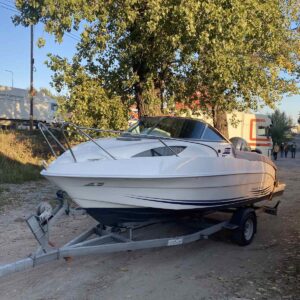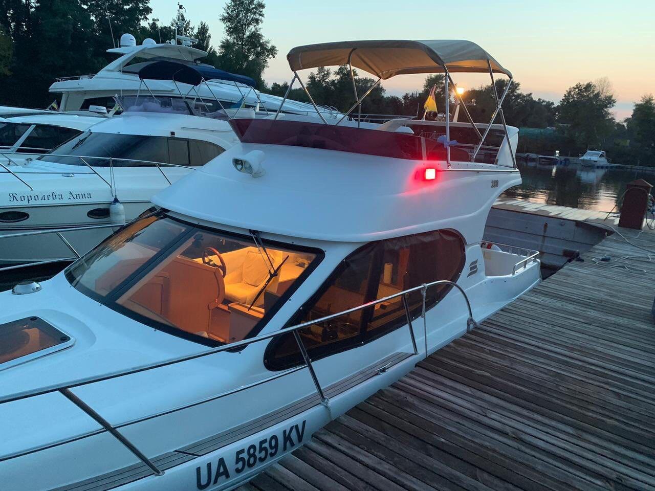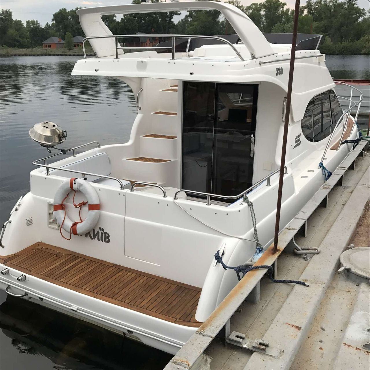 Equipment: two control posts, two cabins, company cabin, galley, galley, TV, diesel stove for cooking, tanning mattress on the bow of the vessel, cockpit awning, awning from the sun on the flybridge, teak covering of the deck and mining platforms, hot water boiler , aft shower, a table in the cockpit. One engine, Volvopenta D 4, diesel, twin-screw column, fuel tank 400 l., waste water tank 80 l., water tank 120 l. The vessel is fully serviced.